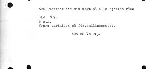 //// Skalljvattnet med sin magt på alla hjertan råda. //// Sid. 407- //// 8 str. //// Nyare variation på förvandlingsmotiv. //// ARW MS Vs 2:3. //// i ////