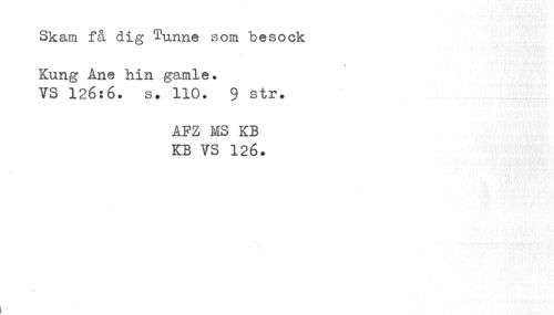 //// Skam få dig Tunne som besock //// Kung Ane hin gamle. VS 126:6. s. 110. 9 str. //// AFZ MS KB KB VS 126. ////