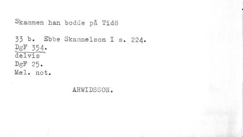 //// I //// ' I //// Skammen han bodde på Tidö //// 33 b. Ebbe Skammelson I s. 224* DgF 354. //// delvis //// DgF 25. ! //// Mel. not. //// ARVIDSSON. //// t i ..til (ji //// t! //// ¦ //// ¦i i ////