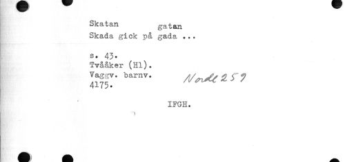 //// Hl //// Skatan gatan //// Skada gick på gada ... //// s. 43. //// Tvååker (Hl). //// Va ggv. barnv. /{/tnsfy 2 7 //// 4175. ' //// IFGH. //// B'" //// t //// ^k A ////