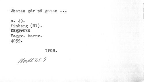 //// I //// Skatan går på gatan •.. I //// i //// s. 49. //// Vinberg (ill). //// xxgpisx //// Vaggv. barnv. //// 4039. //// I //// IFGH. //// /yw&zw ////