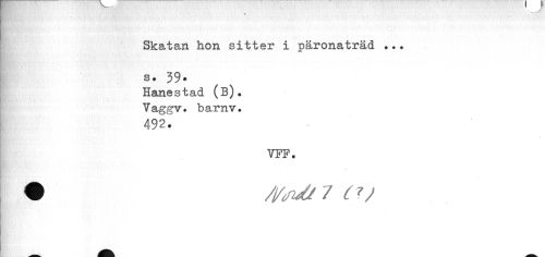 //// . //// ¦ //// ¦MöBSs*^ V »i //// HKm C ¦ ' * //// Skatan hon sitter i päronaträd *»* //// ¦ //// s ? 39. //// Hanestad (B). Vaggv. barnv. //// 492. //// f • '1 * * //// VFF. //// • /i/Mt 7 c<7 ////