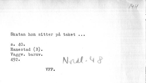 //// ! ¦ //// 1 //// j //// i //// Skatan hon sitter på taket ... j //// i //// s. 40 • //// Hanestad (B). Vaggv. harnv. //// 492 jf^l ^'jf' ^ //// YPF. //// t ////