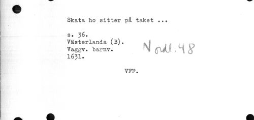 //// Skata ho sitter på taket //// « //// S. 36. //// Västerlanda (B). //// Vaggv. b ar nv. M , C| gf //// 1631. //// VFF. //// __jM ^k ////