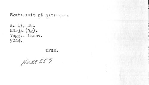 //// r //// Skata satt på gata .•.• //// ... //// s. 17, 18. I //// Härja (Vg). j //// Yaggv. barnv. i //// 5044. //// IFGH. 1 //// I //// r i //// i ////