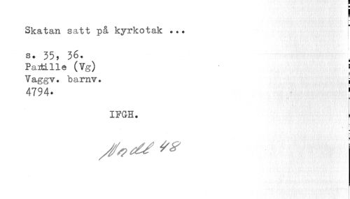 //// r //// o //// Skatan satt på kyrkotak ... //// | //// s. 35, 36. //// PantLlle (Vg) i //// Vaggv. barnv. , //// 4794. ! //// t //// IFGH. | //// i i— //// * ! ////