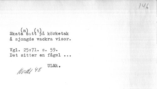 //// m //// i i //// I //// Skatin^at(;^å körketak å sjongde vackra visor. //// Vgl. 25:71- s. 59- //// Det sitter en fågel ... //// ULMA.. //// e ////