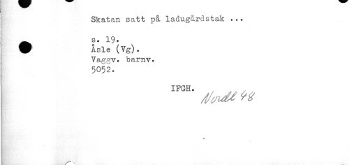 //// Skatan satt på ladugårclstak ... //// Ä s. 19. //// Asle (Vg)* Vaggv. "barnv. 5052. //// IFGH. //// /i/cnM t* //// » //// tp-., //// K ////