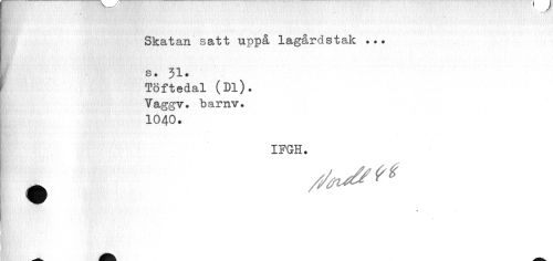 //// v., ^jr //// ¦ //// i ¦ //// , ¦ ' . . . • t • • //// Skatan satt uppå lagårdstak ... //// K s* 51* //// Töftedal (Dl). Vaggv. barnv. 1040. //// IFGH. ////