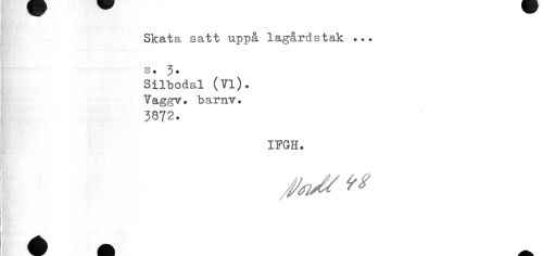 //// Skata satt uppå lagårdstak ... s. 3. //// Silbodal (Vi). Yaggv. barnv. //// 3872. //// IPGH. ////
