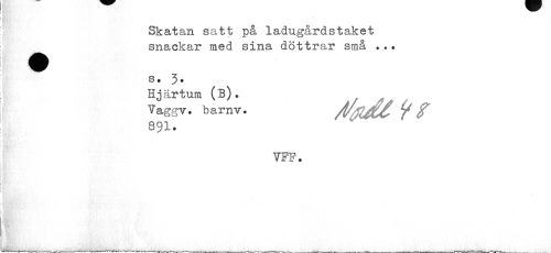 //// Skatan satt på ladugårdstaket ^^ snackar med sina döttrar små ... //// s. 3. //// Hjcärtum (b). //// Vaggv. barnv. /Vfi&l 9 f //// VFF. ////