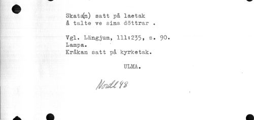 //// Skatan) satt på laetak å talte ve sina döttrar . //// Vgl. Längjum, 111:235> s* 90* //// Lampa* //// Kråkan satt på kyrketak. //// ULM. //// JfaCtt* ////