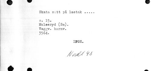 //// Skata satt på laetak ... //// s. 15. //// Mulseryd (Sm). Vaggv. barnv. //// 3564. //// IffGH* ////
