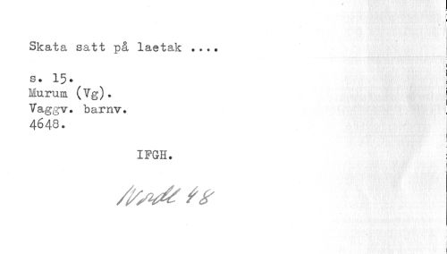 //// r //// f //// Skata satt på laetak . . •. //// i //// s. 15* Murura (Vg) . Vaggv. barnv. //// 4648. //// IFGH. : ////