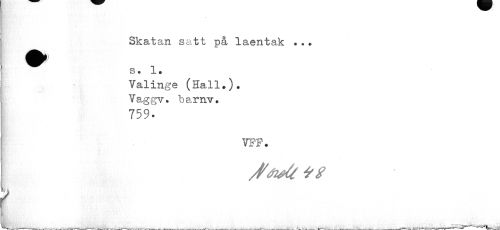 //// Skatan satt på laentak ... //// ^^ s. 1. //// Valinge (Hall.). Vaggv. härav. //// 759- //// VFF. //// m .i?ili: ////