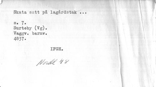 //// Skata satt på lagårdstak »• ? v 1 ! //// 11 H //// Surteby (Vg)• Vagg v. barnv. //// 4837- .i \ . //// IFGH. //// Vi1 //// pili j i ////