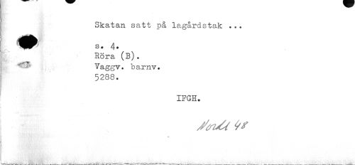 //// Skatan satt på lagårdstak ..? //// Röra (B). Vaggv. barnv» 5288. //// IFGH» //// * //// "» . f. rf--.. ---——-'-r—---.--——--- ___ -r^K___/___.___ . . —--- ////