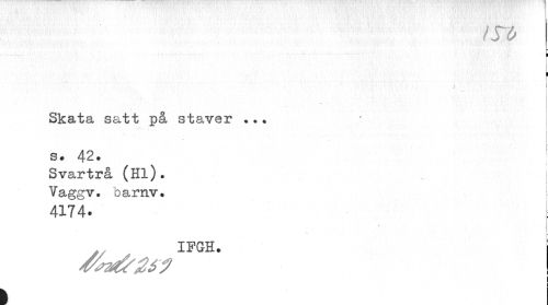 //// m //// I //// I //// J //// Skata satt på staver //// s* 42. //// Svartrå (Hl). Vaggv. barnv» //// 4174. //// IPGH. //// 1 ////