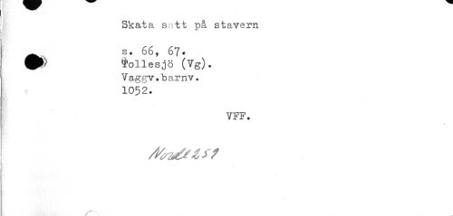 //// Skata satt på stavern //// ^ s. 66, 67* //// foliesjö (Vg). Vaggv.*barnv. 1052. //// VFF. //// /---' ////