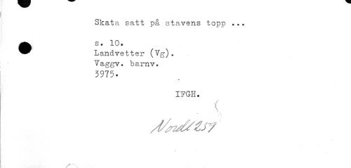 //// Skata satt på stavens topp .?. //// •s. 10* //// Landvetter (Vg). Vaggv. barnv. //// 3975 • //// IFGH. //// j < //// \ ////