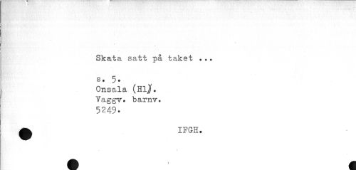 //// Skata satt på taket ... s. 5* //// Onsala (Hljf. Vaggv. barnv. //// 5249. //// 0 IFGH. //// / //// A « ////