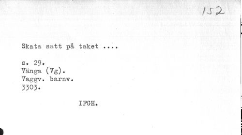 //// fsX //// i //// ! //// Skata satt på taket ... //// s. 29. Vänga ( Vg) . Vaggv. barnv. //// 3303. //// IFGH. //// ! //// i 1 ////