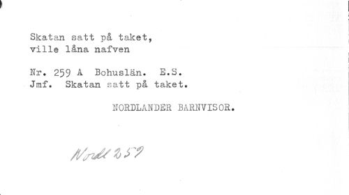 //// i //// i //// Skatan satt på taket, ville låna nafven //// Nr* 259 A Bohuslän. E.S. j //// , 1 //// Jmf. Skatan satt på taket. //// NORDLANDER BARNVISOR. //// \ //// MrJ/ % SV ////
