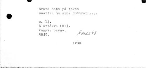 //// Skata satt på taket ^^ snattra mä sina döttrar //// s. 14. //// Slättåkra (Hl). //// Vaggv. barnv. / . //// 3849. //// IFGH. //// S • v ___..._ v___,,,,, . , //// ~--__L A. V^MflO ' ¦ u ^__rw^---'j-w-f---—--—---—---l-s.*--- --*---— ---*---—— --- ////