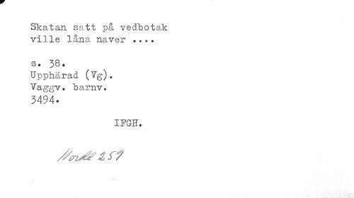 //// Skatan satt på vedbotak ville låna näver //// s. 38. //// Upphä,rad ("%). Yaggv. barnv. //// 3494* //// IFGH. //// > //// I //// I ////