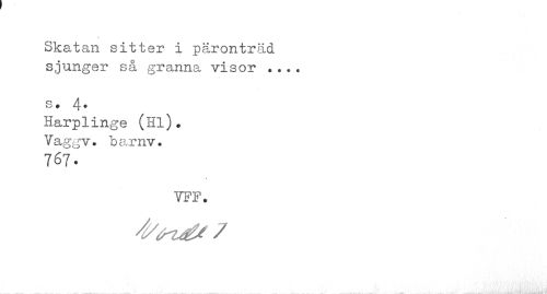 //// Skatan sitter i päronträd-sjunger så granna visor .•• ? //// s* 4* //// Harplinge (Hl)* Vaggv* barnv. //// 767. //// VFF. //// / ////