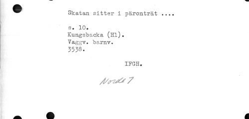 //// ^^ Skatan sitter i päronträt ... //// s • 10. //// Kungsbacka (Hl). Vaggv. ba.rnv. //// 3538. //// IFGH. ////