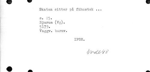//// Skatan sitter på fähustak ... //// s. 25. //// Bjurum (Vg). //// 5179. //// Vaggv. barnv. //// IFGH. ////