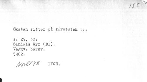 //// /J i //// Skatan sitter på förstutak .. . //// s. 29, 30. //// Sandals Ryr (Dl). Vaggv. b ar n v. 5482. //// rf/fl&M IFGH. //// i ////