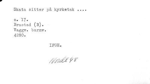 //// Skata sitter på kyrketak ... s • 17. //// Brastad (B). Vaggv. barnv. 4280. //// IFGH. /frid*?? ////