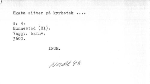 //// Skata sitter på kyrketak ... //// i //// s» 4» //// Hunnestad (Hl). //// i //// Vaggv. barnv. 3600. //// IFGH. //// i : //// ir* ////