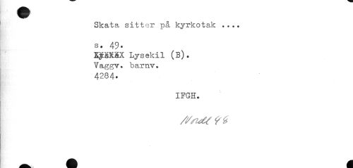 //// Skata sitter på kyrkotak ... s. 49. //// IPSKSX Lysekil (B). Vaggv. barnv. //// 4284. //// IFGH. ////