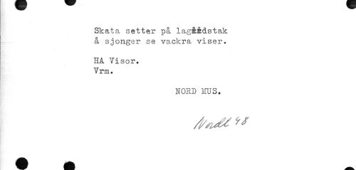 //// Skata setter på lagåådstak å sjonger se vackra viser. //// HA Visor. Vrm. //// NORD MUS. ////
