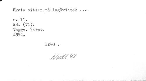 //// Skata sitter på lagårdstak ... //// s. 11. Ed. (Yl). //// Vaggv. barnv. //// 4398. //// 12 GH . ////