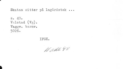 //// Skatan sitter på lagårdstak ... s. 40. //// Valstad (Vg). Vaggv. barnv. 5026. //// IFGH. //// \ ////