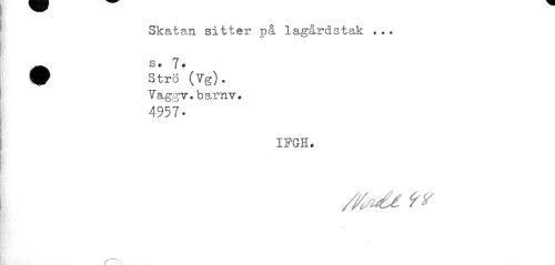 //// Skatan sitter på lagårdstak ... //// s. 7. //// 9 Strö (Vg). //// Vaggv.barnv. //// 4957- //// IFGH. //// / X ////