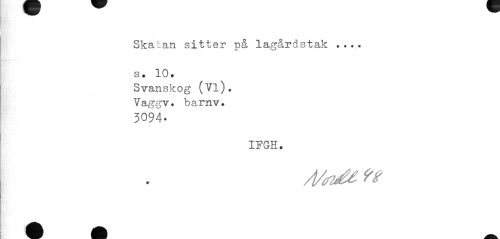 //// Skatan sitter på lagårdstak s# 10» //// Svanskog (Vi). Vaggv. barnv. //// 3094- //// IFGH. //// /Vtrvgl?? ////