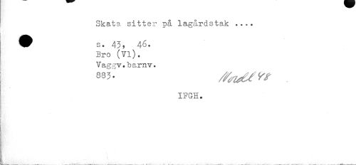 //// Skata sitter på lagårdstak .. *. //// s. 435 46• Bro (Yl). Vaggv.barnv. //// IFGH. ////