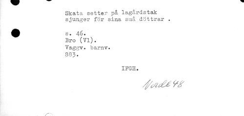 //// Skata setter på lagårdstak sjunger för sina små döttrar . //// ¦B s. 46. //// Bro (71). Vaggv. barnv. s83. //// IFGH. //// /^adl 9g ////