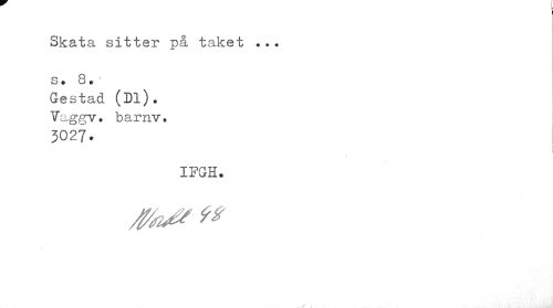 //// Skata sitter på taket ... s• 8. * //// Gestad (Dl). Vaggv* barnv. //// 3027. //// IFGH. ////