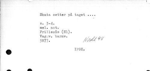 //// Skata setter på taget ... //// s. 5-4. //// mel. not. Frillesås (Hl). //// 3 8 7 7T * bar"V' ^ IFGH. //// 1 ////