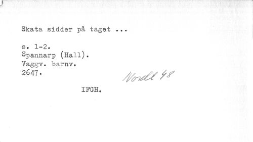 //// T ¦ i • ¦ . 1 • ' • //// '.''.' . >-'¦.•" i - - » • ' « ' .t '" ;. • -( ; i //// i i //// • | //// t i //// i //// Skata sidder på taget ..? s. 1-2. //// aparmar p (Hall). //// Vaggv. barnv. 2647' //// IFGH. ////