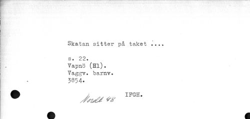 //// Kl/. //// _ //// !r<v. t- //// h: ¦ //// K; //// Skatan sitter på taket ... //// s * 2 2 ? Vapnö (Hl). Vaggv. barnv. //// 3854- //// A IFGH. ////