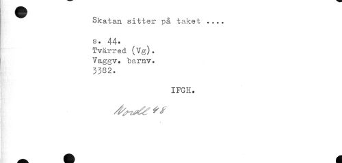 //// ^^ Skatan sitter på taket «... //// s. 44. //// Tvärred (Vg). Vaggv» barnv. 3382. //// IFGH. ////