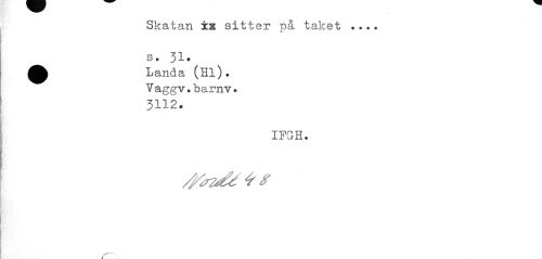 //// Skatan xx sitter på taket ... s. 31. //// ^^ Landa (Hl). //// Vaggv.barnv. 3112. //// IFGH. //// /---N. ////