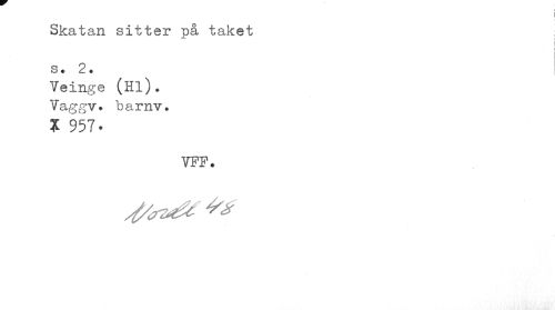 //// Skatan sitter på taket //// ?i. , //// i i //// i //// s. 2. //// Veinge (Hl). Vaggv. barnv. //// ? 957. //// VFF. ////